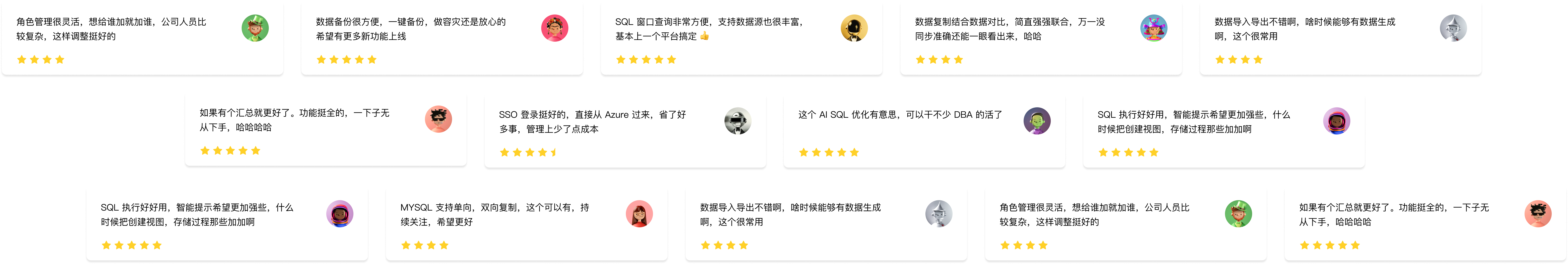 一般的 MySQL 迁移工具对 MariaDB 兼容并不好,迁移过程容易出现特殊类型不兼容、迁移数据不一致等问题,这可能导致业务错误或不可用。NineData 支持不停机的数据库迁移,对 MariaDB、PostgreSQL 各个版本都有非常完善的支持,还支持高效的数据对比能力,可以保障迁移、同步后的数据一致,保障业务的持续可用。