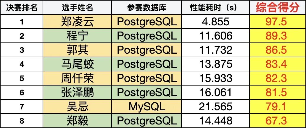 第三届数据库编程大赛-八强决赛成绩揭晓