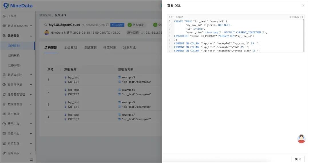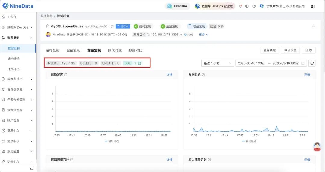 NineData 支持全量复制完成后无缝衔接增量复制,让 MySQL 中后续新增、修改、删除的数据持续同步到 openGauss PostgreSQL 兼容版。对于迁移项目来说,这意味着: