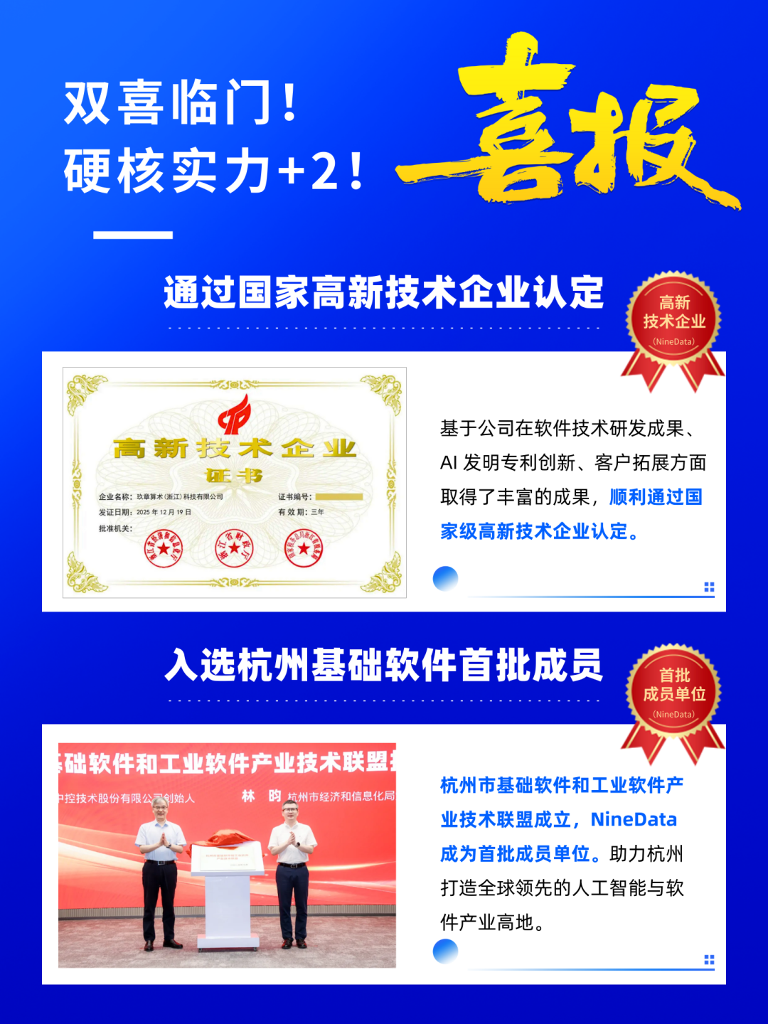 杭州市基础软件和工业软件产业技术联盟成立,玖章算术 NineData 作为国产基础软件领域标杆企业,获授首批联盟成员单位。