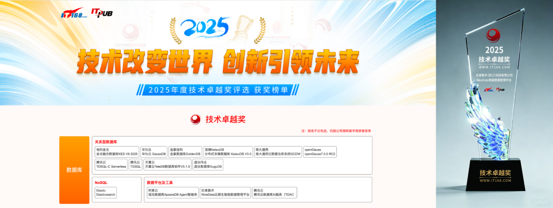 NineData 荣登《2025中国技术力量年度榜单》,获得 Data & Al 最具价值产品/平台奖