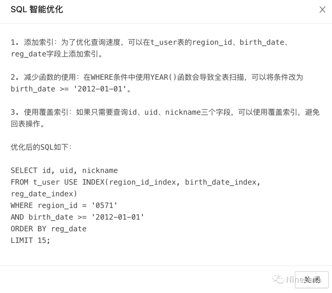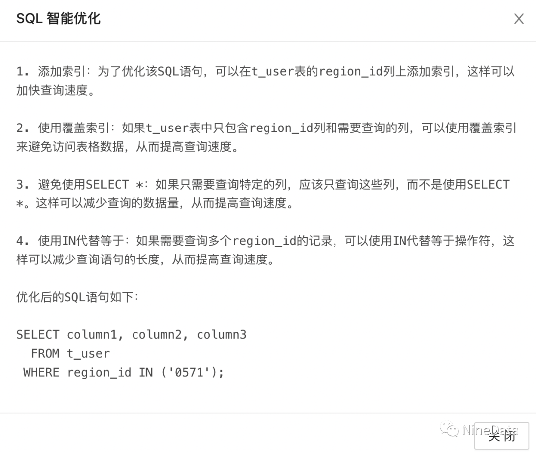 通过这些案例,我们可以看到,通过 NineData 的 AI SQL 优化能力,可以大大提高开发者日常 SQL 开发效率,也可以大大减轻 DBA 的工作负担。