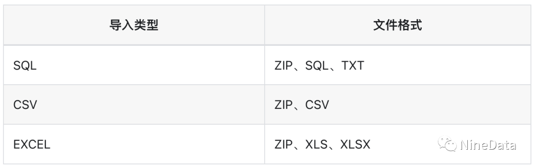 NineData 的数据导入功能可以帮助用户将包含大量数据的文件导入到目标数据库中。具体的功能详情如下: