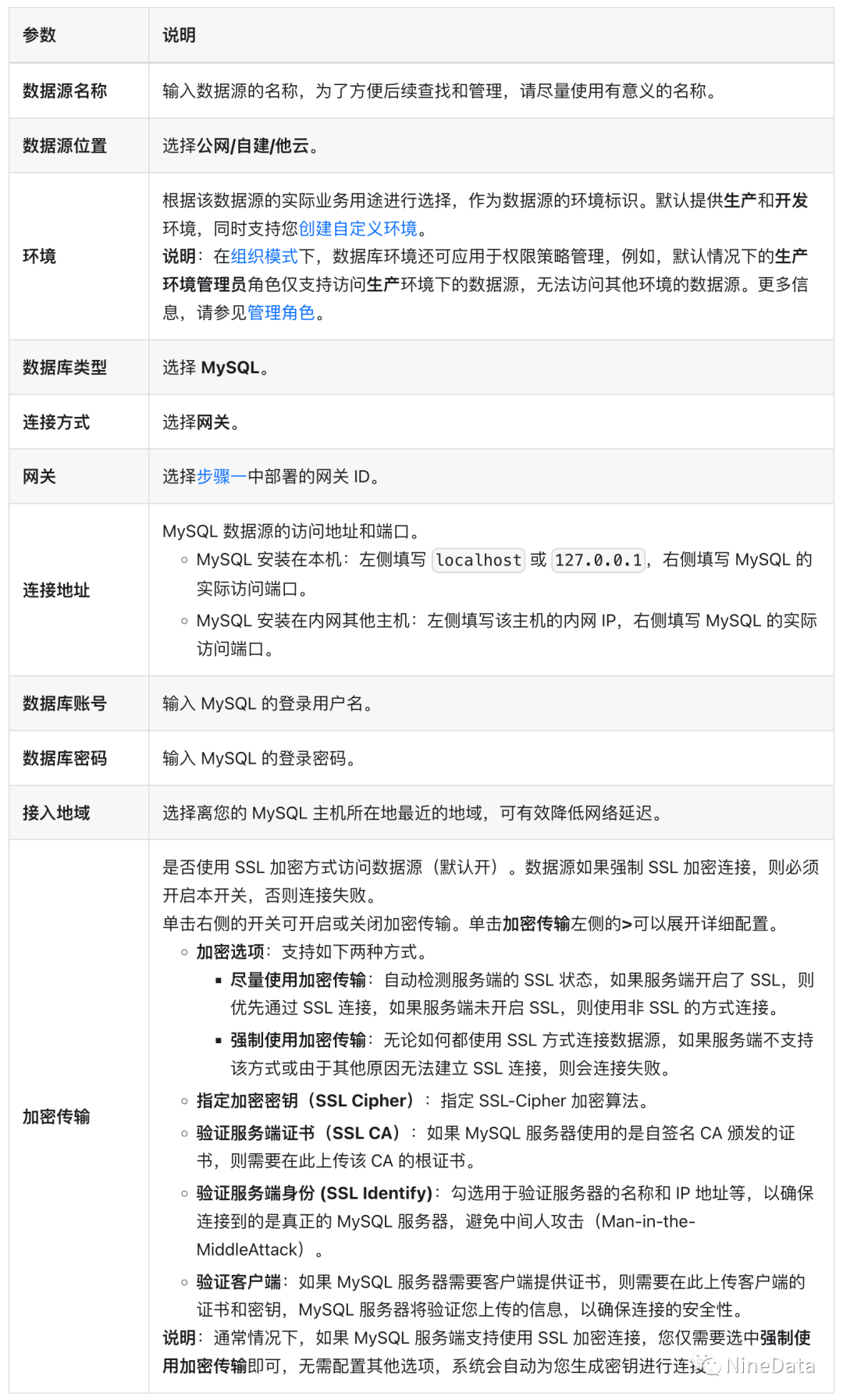 NineData 支持通过网关接入 MySQL 数据源,您无需提供外网地址,即可将处于私网或专有网络的 MySQL 接入 NineData。