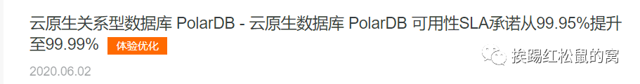 | 可用性其它特性 | 大多数故障 60 秒内自动恢复, 支持无中断的实例大小调整和数据库维护 | 未说明 |