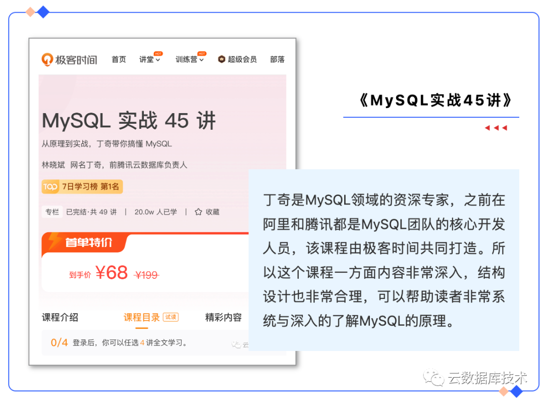 对于深入学习的人来说, 单独的数据库学习是没有意义的,必须服务好具体的业务场景才能发挥其价值。推荐: