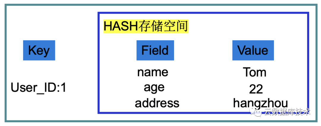 如上图,左边是 Key 对应右边存储空间,右边的存储空间叫HASH,也就是说HASH是数据类型,他不是具体的一个数据,而是存储空间上的一堆数据。它底层有ziplist、hashtable两种数据编码。