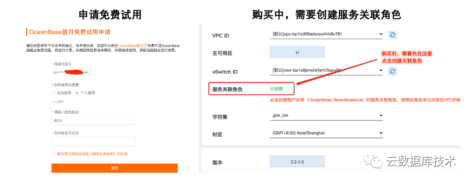 在购买页,可能会提示"需要创建服务关联角色",只需在购买页下面点击创建就可以了(可以参考文末的截图)