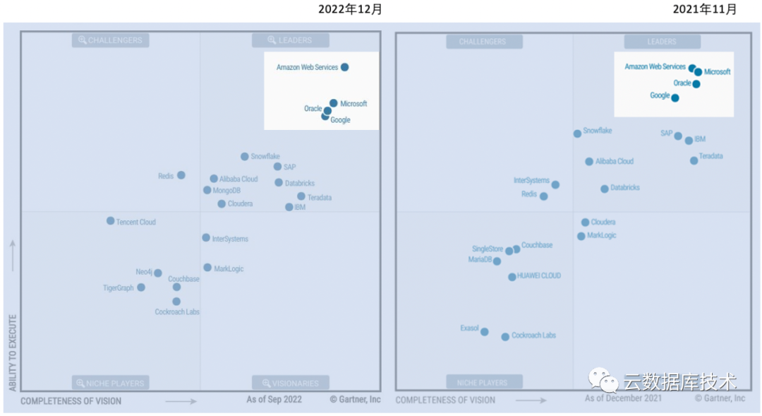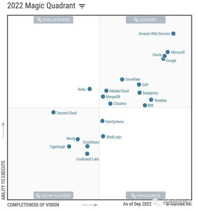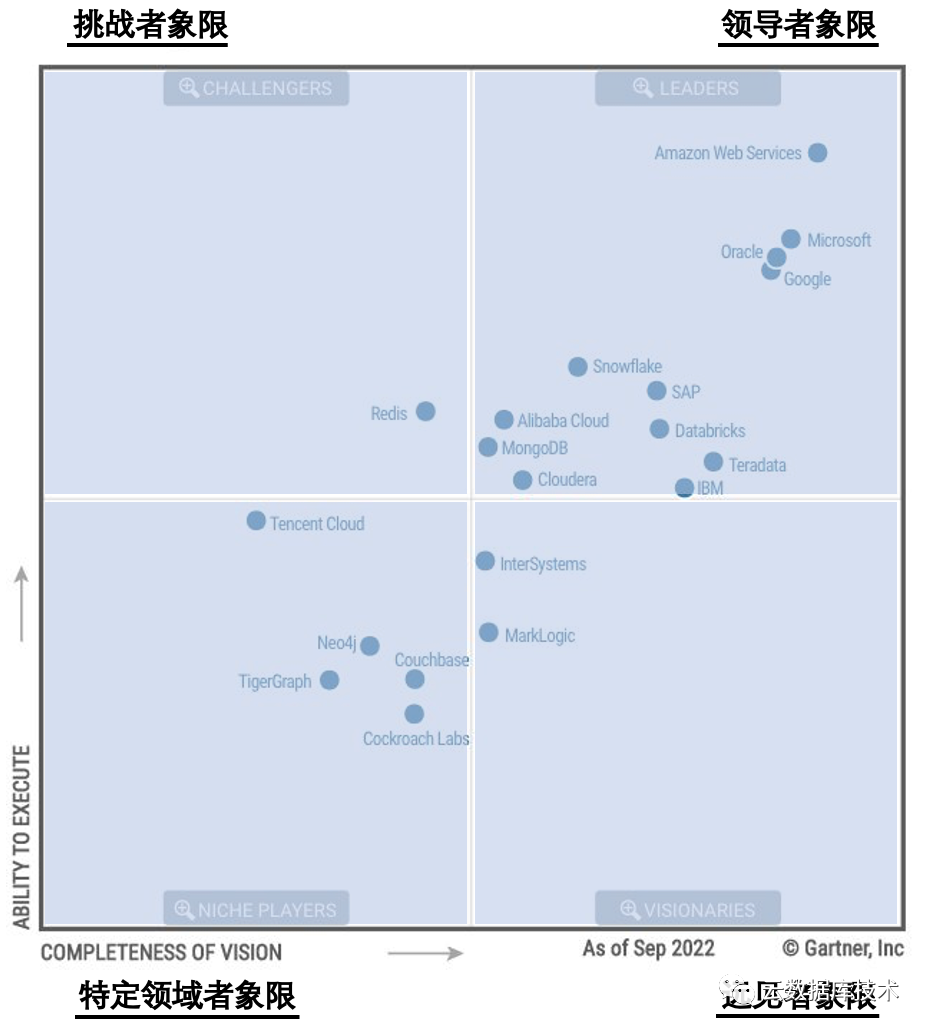 数据库魔力象限 2022:阿里领先、腾讯再次进入、华为退出