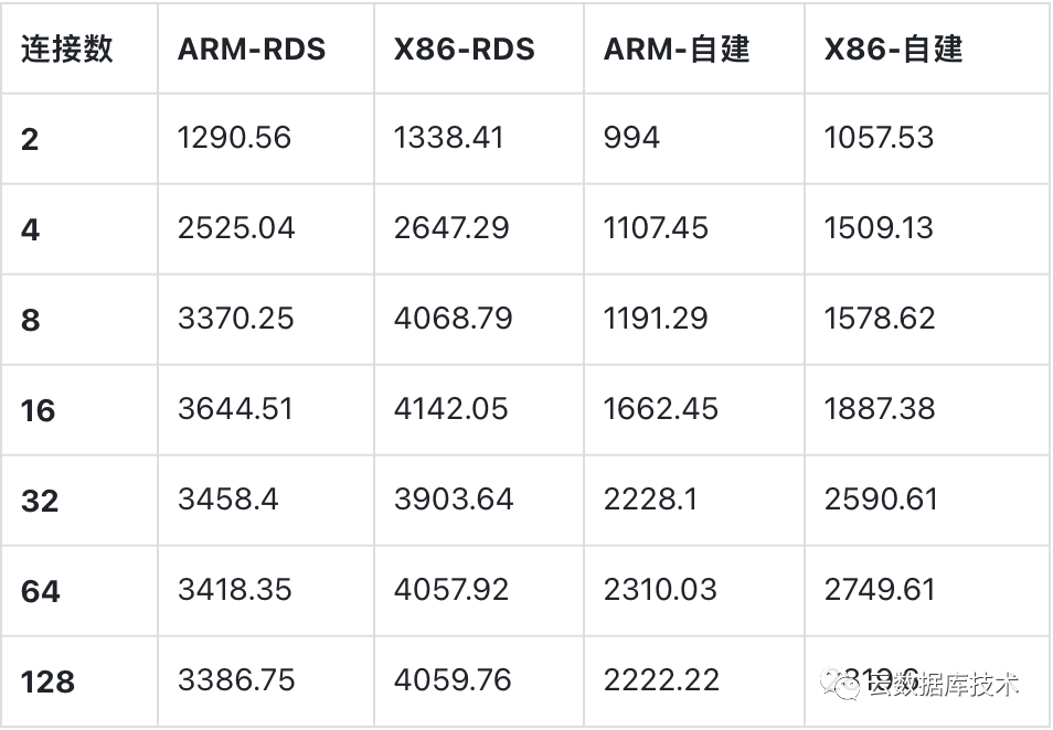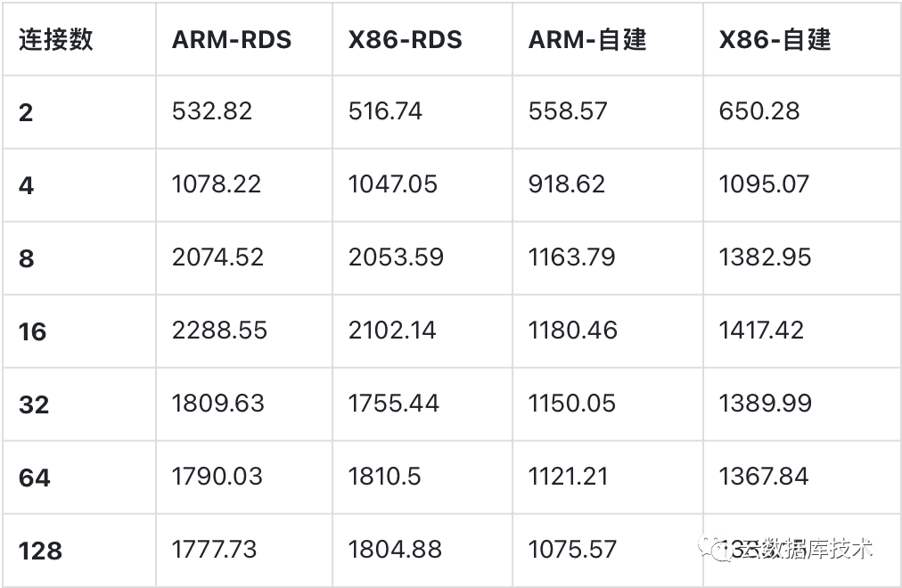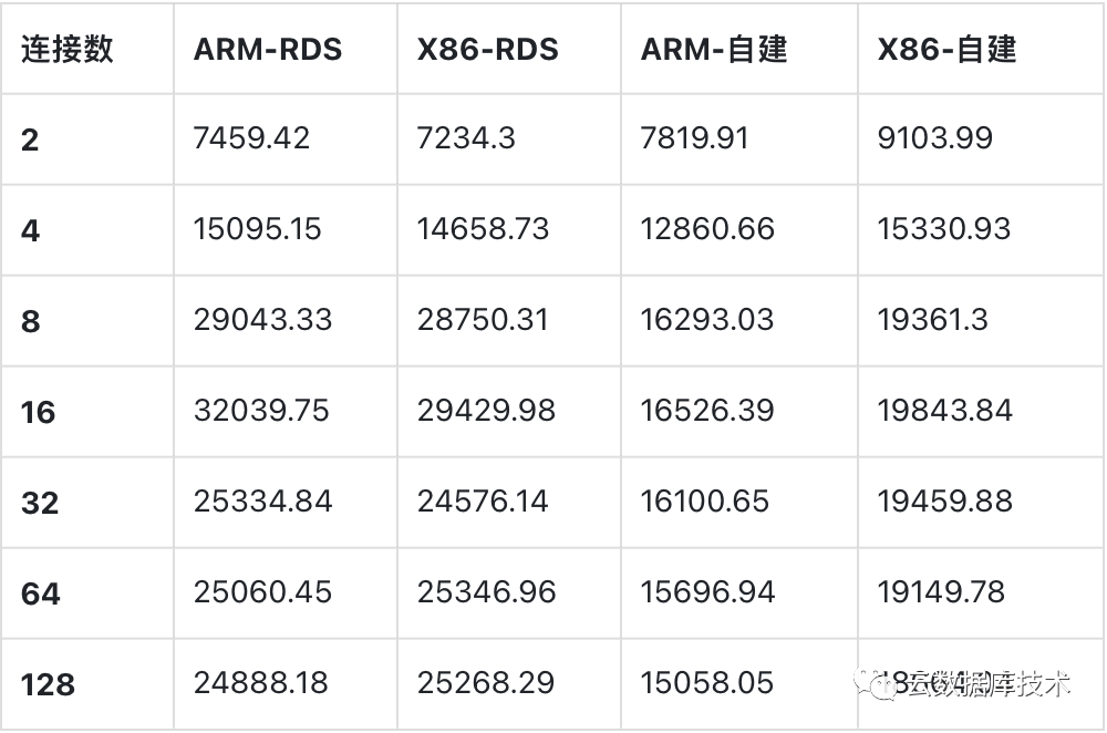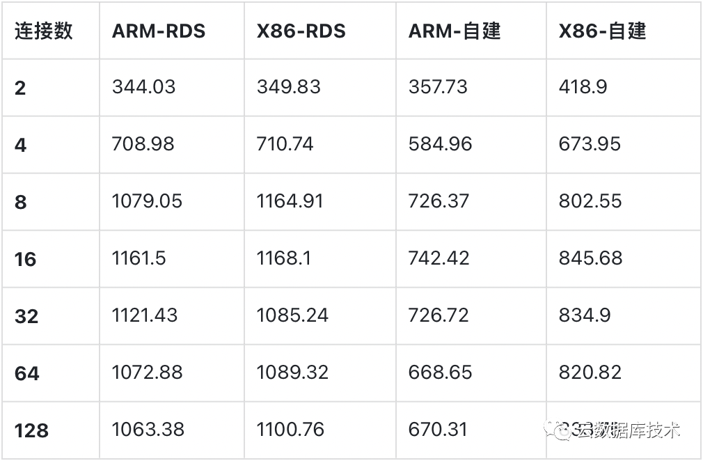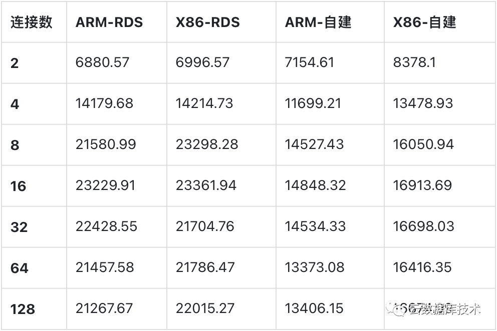 补充,在MySQL On ARM的文章中:自建MySQL实例,在低负载下,ARM和X86架构在读性能上差距不大,在高负载下,X86的性能要优于ARM;在有写的场景下,ARM要差于X86架构。