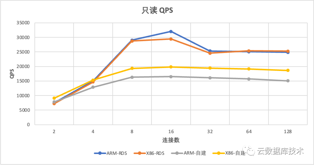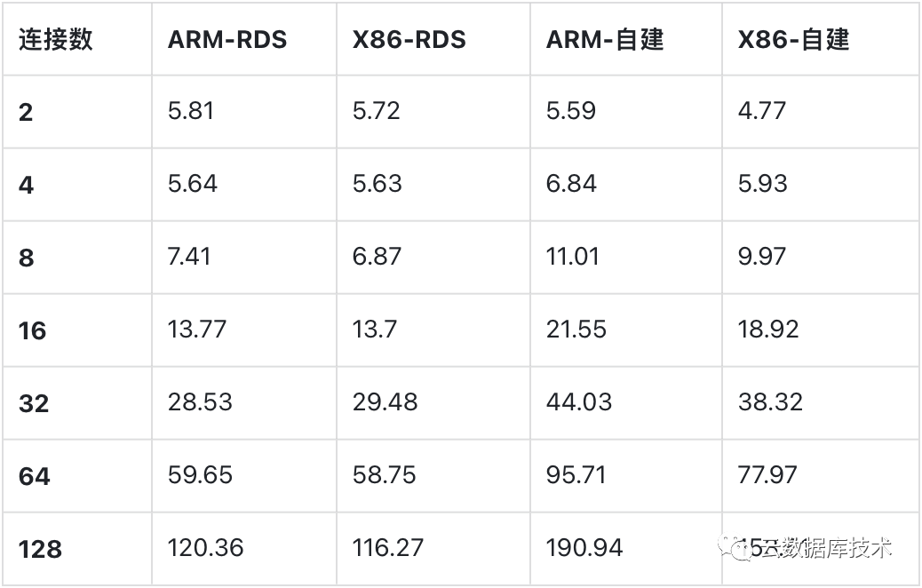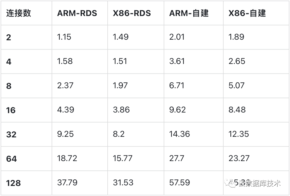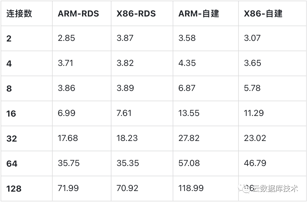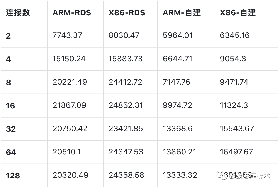 补充,在MySQL On ARM的文章中:自建MySQL实例,在低负载下,ARM和X86架构在读性能上差距不大,在高负载下,X86的性能要优于ARM;在有写的场景下,ARM要差于X86架构。
