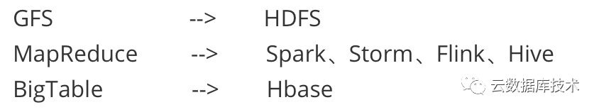 这三篇论文网上有非常丰富的解读,这里就不再赘述,只简单罗列三篇论文与Hadoop生态中的组件对应关系: