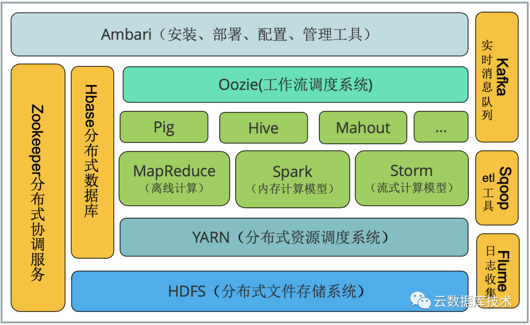 此外,在2010年之后诞生于社区的 HBase、Storm、Sqoop、Flume、Oozie等组件,这时的Hadoop已经从传统的Google 三驾马车GFS、MapReduce 、BigTable ,发展为几十个相关组件的庞大生态,也迎来了Hadoop生态商业化的春天,然而谁也没有想到它的春天短暂且不美丽。