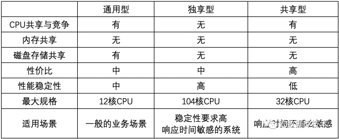 所以,实际情况是,通用型的价格更加便宜,性能也会更好。缺点在于,可能会出现一些不可预期的性能波动,而因为大多数数据库应用都是IO密集型的,所以,实际场景中,这种不可预期的波动并不是非常多。