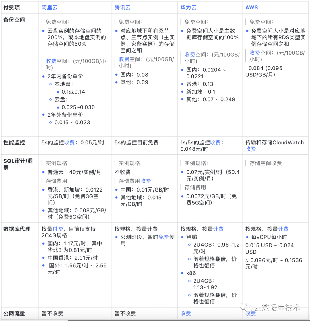 SQL审计:腾讯云只收存储费用,阿里云和华为云收实例费用和存储费用,存储上腾讯云价格最高,比阿里云高25%,比华为云高39%;