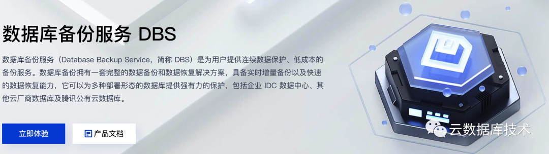 腾讯云发布新产品数据库备份(DBS),向用户多云环境数据库的连续数据保护、备份服务。是非常不错的产品,但是,总的来说,好卷...