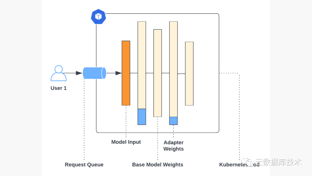 虽然每个微调模型的专用部署在操作上很容易实现,但却远非最佳。如上图所示,大部分开销来自基本模型参数,而每个部署之间的参数都是相同的。微调模型特有的部署部分--适配器权重--只占总参数的不到 10%,在大多数情况下远远低于 GPU 内存容量。