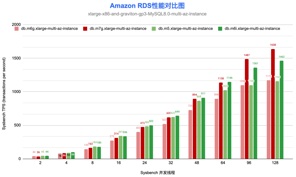 在前篇中(参考),较为详细对比了Amazon RDS的x86和Graviton 2(AWS推出第二代ARM芯片)的性能。Graviton 3实例在今年的4月份支持了RDS数据库(参考)。本篇中,我们再系统的看看m7g实例(Graviton 3)、m6g实例(Graviton 2)、m5实例(Intel Xeon)、m6i实例(第三代Intel Xeon/Ice Lake)的RDS性能(包括性价比)表现如何。