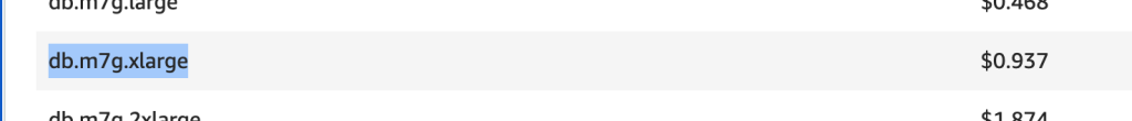 这里关注db.m7g.xlarge、db.m6i.xlarge实例价格,m6g、m5实例的价格可以参考前篇。以东京地区、多可用区实例价格为参考: