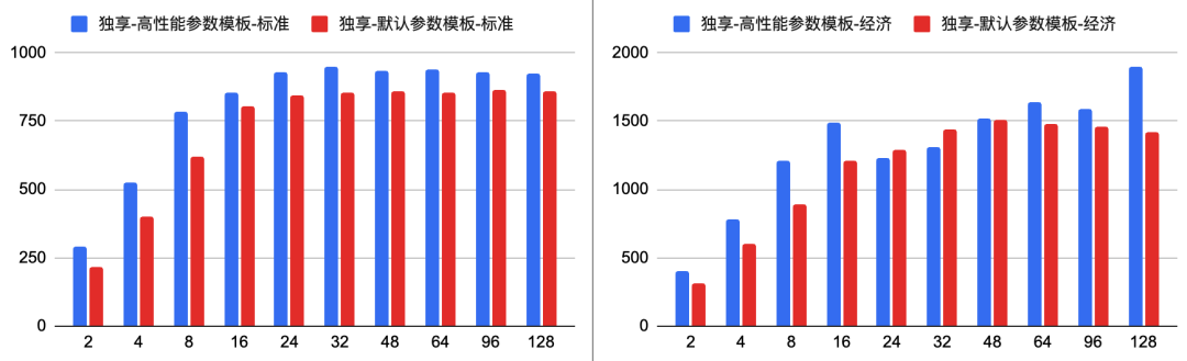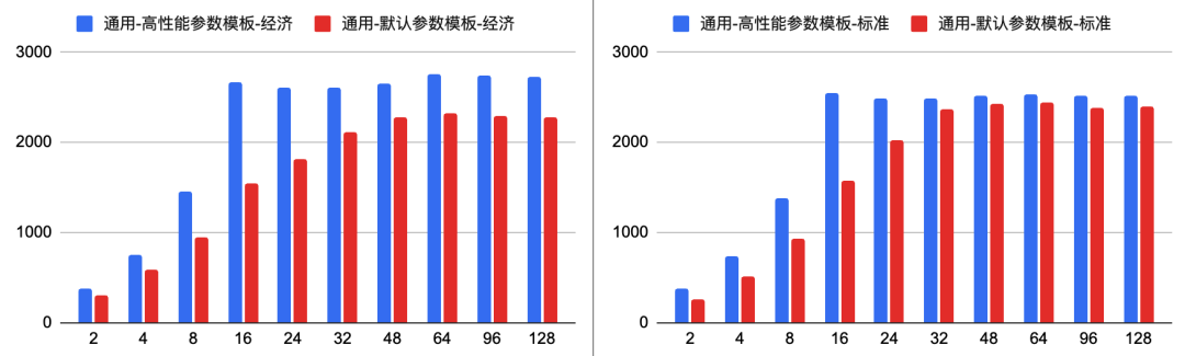 在实际测试中,我们也看到,不同参数模板对于性能有一些影响,但是并不明显。具体性能如下: