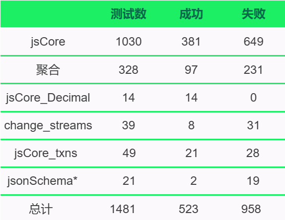 最近又有新导火索,估计是客户竞争原因,MongoDB连续发表了两篇文章,指出AWS的DocumentDB和MongoDB只有33.84%的兼容度,并且给出了很多测试数据,下表是MongoDB给出的DocumentDB兼容性测试通过率。