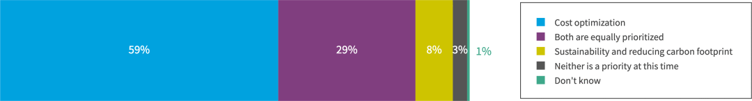 59%的受访者优先考虑成本优化,而只有8%的受访者优先考虑可持续性和减少碳足迹
