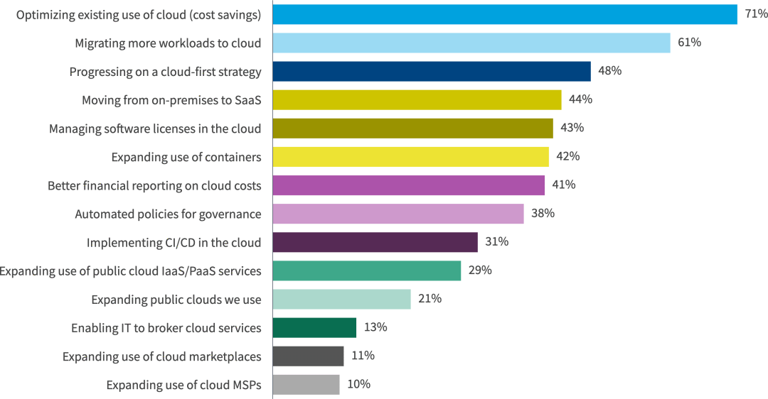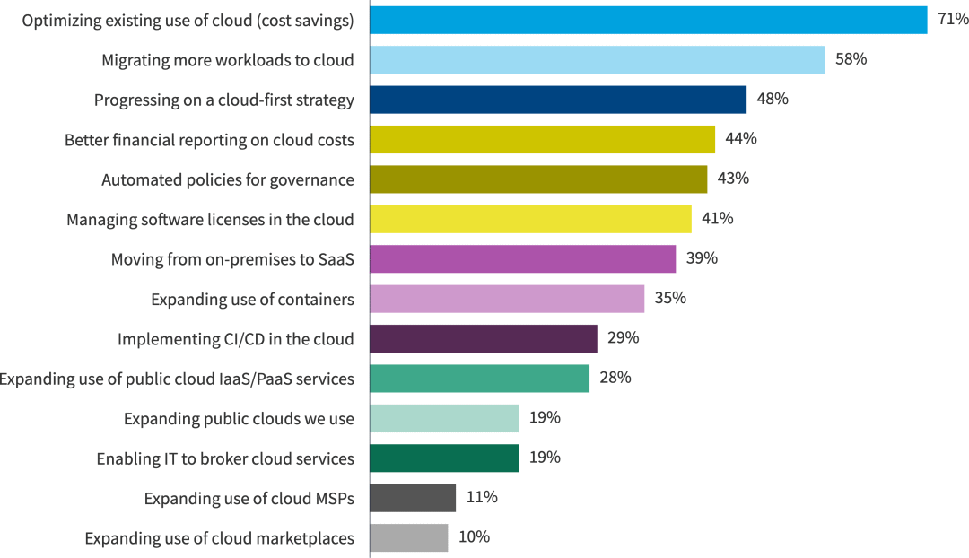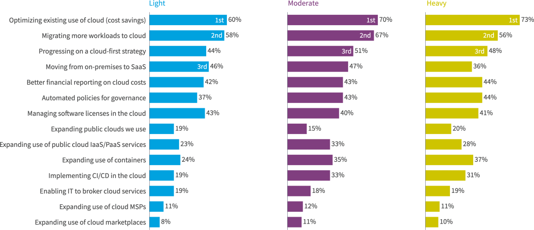 无论使用级别如何,优化云的现有使用并将更多工作负载迁移到云都是最重要的举措