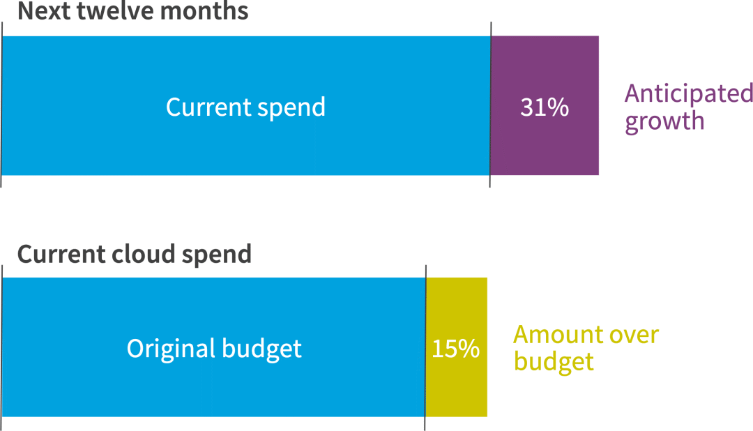 很容易理解为什么 FinOps 作为一门文化实践和财务管理学科不断发展壮大。公有云支出平均超出预算 15%。受访者仍然看好云计算,因为31%的受访者预计他们的支出将在未来12个月内增加。