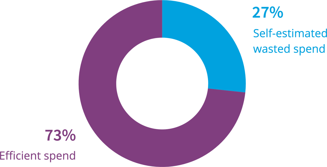 受访者表示,他们的公有云浪费率为27%,与去年报告的28%相似。