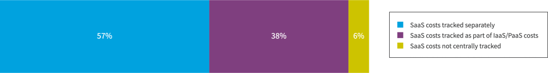 今年,我们要求受访者权衡他们如何管理SaaS和软件成本。对于大多数组织 (57%),SaaS 成本与 IaaS 和 PaaS 成本分开跟踪。