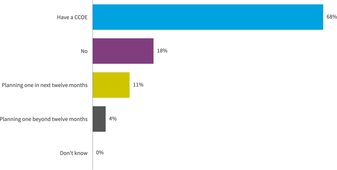 超过一半的组织已经拥有 CCOE;这一比例在未来几年可能会跃升至75%以上