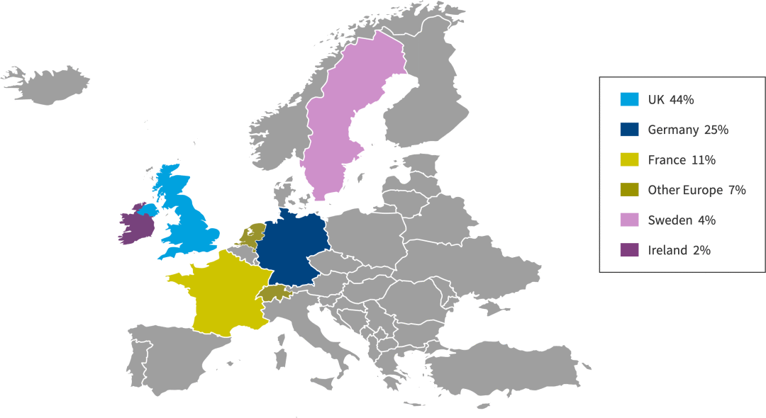 与往年一样,欧洲受访者主要来自英国(44%)、德国(25%)和法国(11%)。