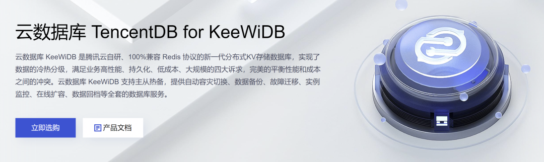 云数据库 KeeWiDB 是腾讯云自研、100%兼容 Redis 协议的新一代分布式KV存储数据库,实现了数据的冷热分级,满足业务高性能、持久化、低成本、大规模的四大诉求,完美的平衡性能和成本之间的冲突。云数据库 KeeWiDB 支持主从热备,提供自动容灾切换、数据备份、故障迁移、实例监控、在线扩容、数据回档等全套的数据库服务。
