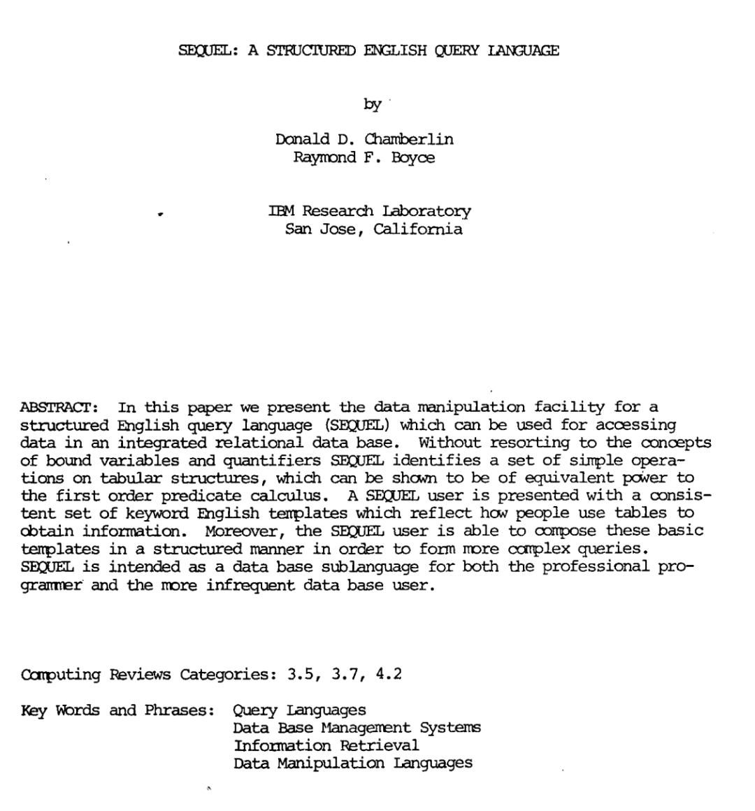 SQL之父:唐纳德·张伯伦(Donald D. Chamberlin) & 雷蒙德·博伊斯(Raymond F. Boyce)