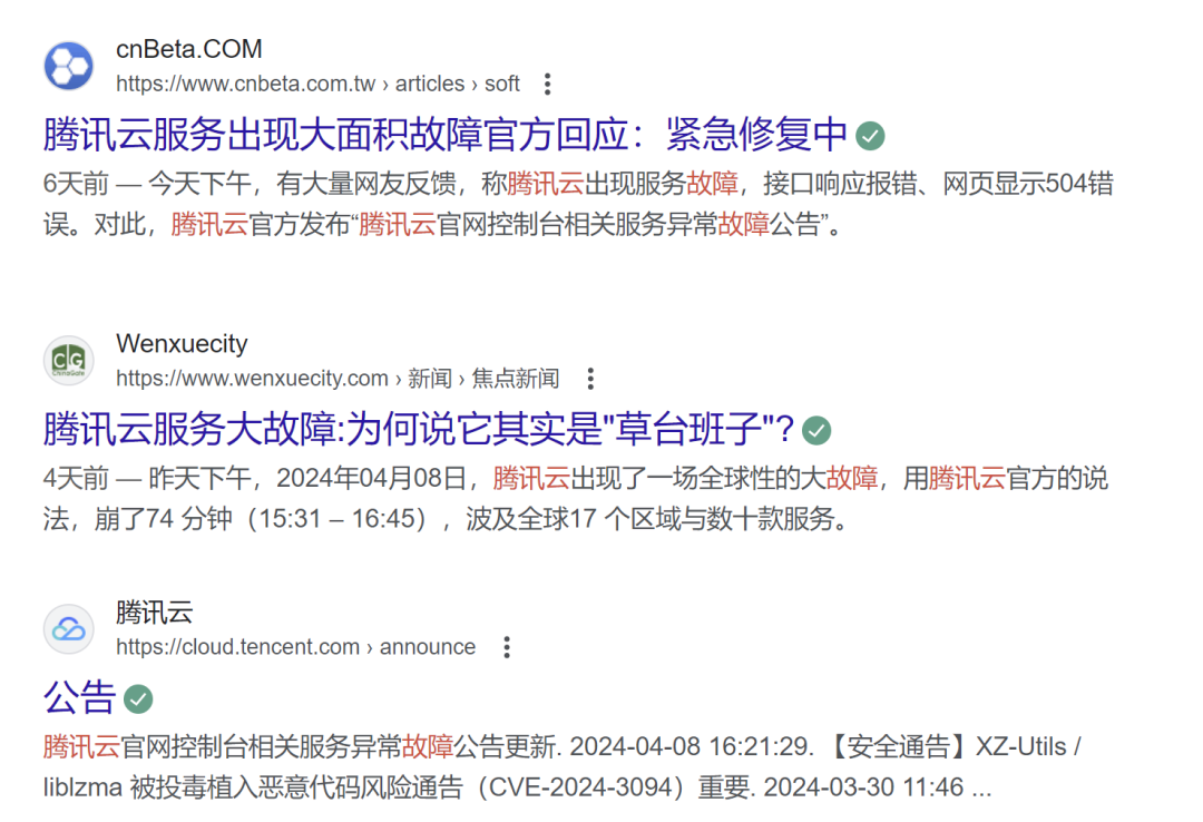 2024.4.8号,腾讯云发生重大故障,控制台完全不可用,腾讯云是中国TOP公有云平台,在全网引起了极大的舆论。对腾讯云服务口碑造成了巨大的负面影响。