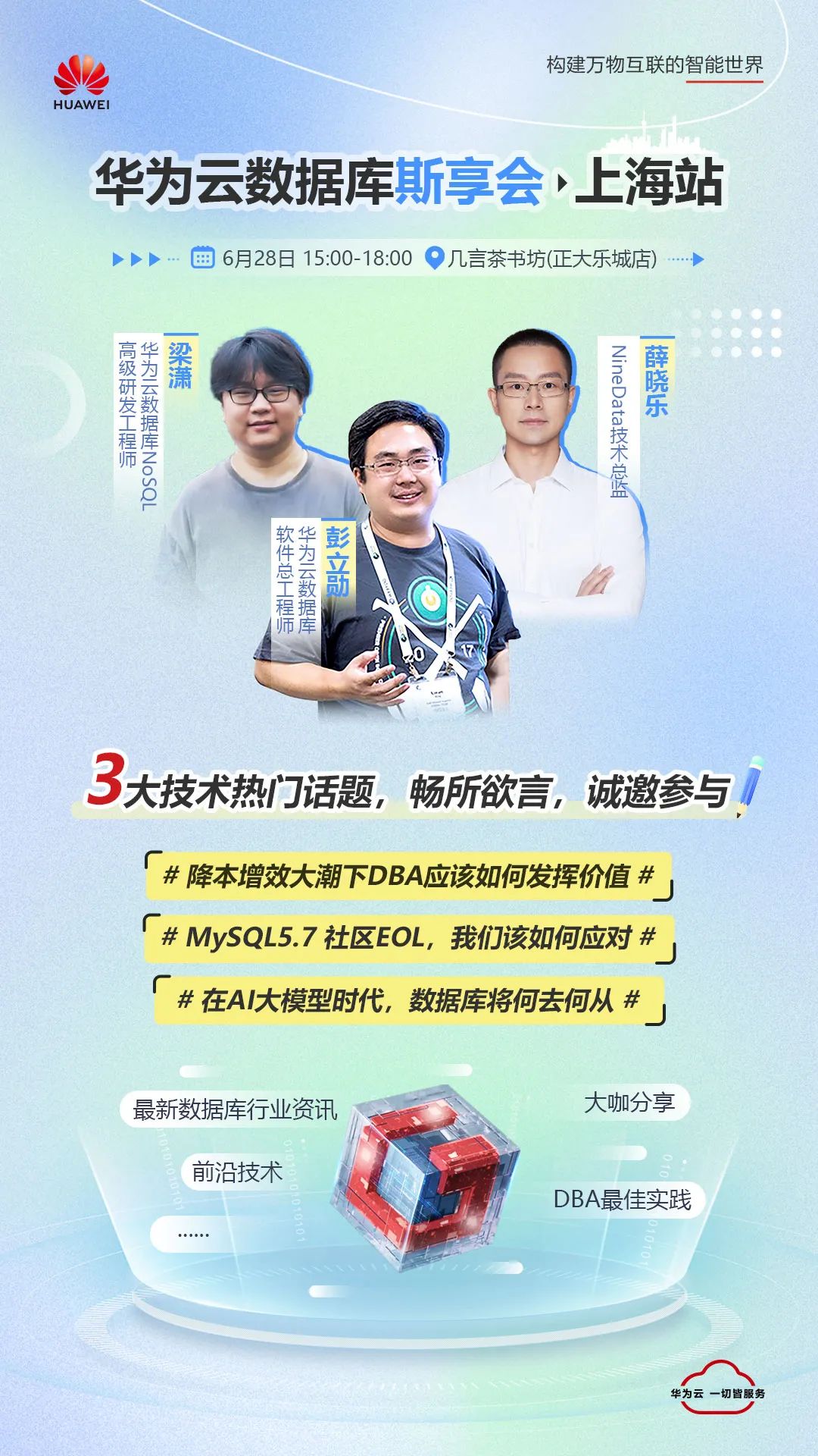 6月28日华为云数据库斯享会上海站,NineData技术总监薛晓乐受邀并带来主题分享