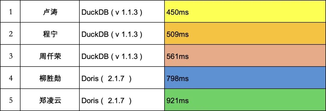 2024 数据库编程大赛-冠军挑战活动圆满落幕,5位选手使用 DuckDB 和 Doris 挑战成功,终极SQL编程大师诞生!