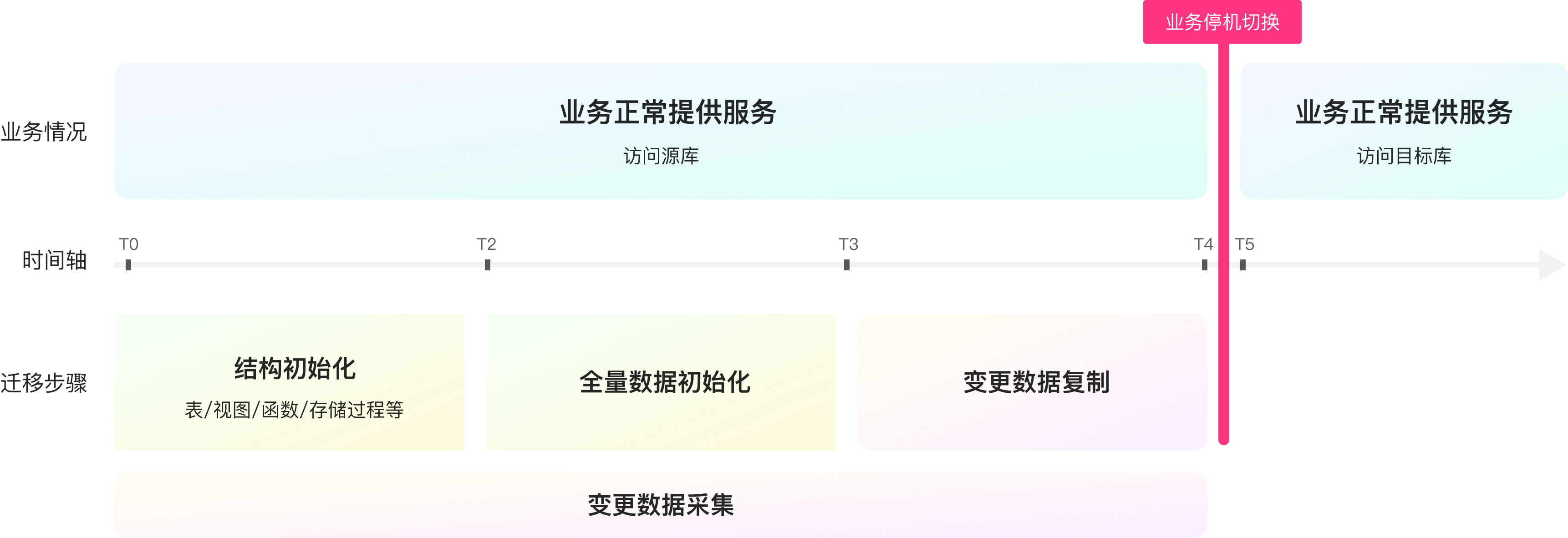 颠覆传统迁移方案,数据库停机时间从数小时、数天降低到分钟级别。数据库迁移过程,业务不受影响。